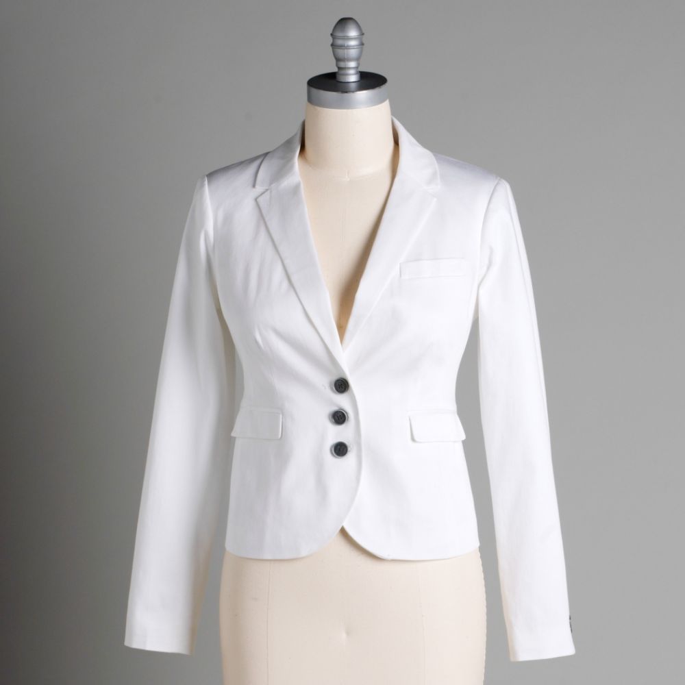 A white blazer is the perfect way to dress up a cami and skirt; it is both feminine and professional, making it a versatile article of clothing to have in your wardrobe. This white three buttoned Attention blazer has crisp, clean lines that has an "old money" feel without breaking your budget. It's only $29.99 at sears.com